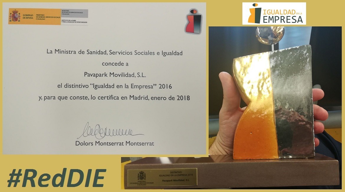 La entrega de dicho galardón supone un reconocimiento al esfuerzo colectivo de todas y todos las/os integrantes de Pavapark Movilidad S.L. en aras de seguir trabajando por la Igualdad en la Empresa.